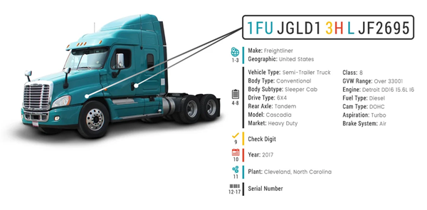 When buyers look for a commercial truck, they need to know exactly what they are getting. One of the fastest ways to get detailed information is by using its vehicle identification number (VIN). The VIN is a 17-character number identifying the code for a specific vehicle; as such, the VIN is unique for each car and truck, much like a fingerprint for each person, and no two vehicles in operation have the same VIN.